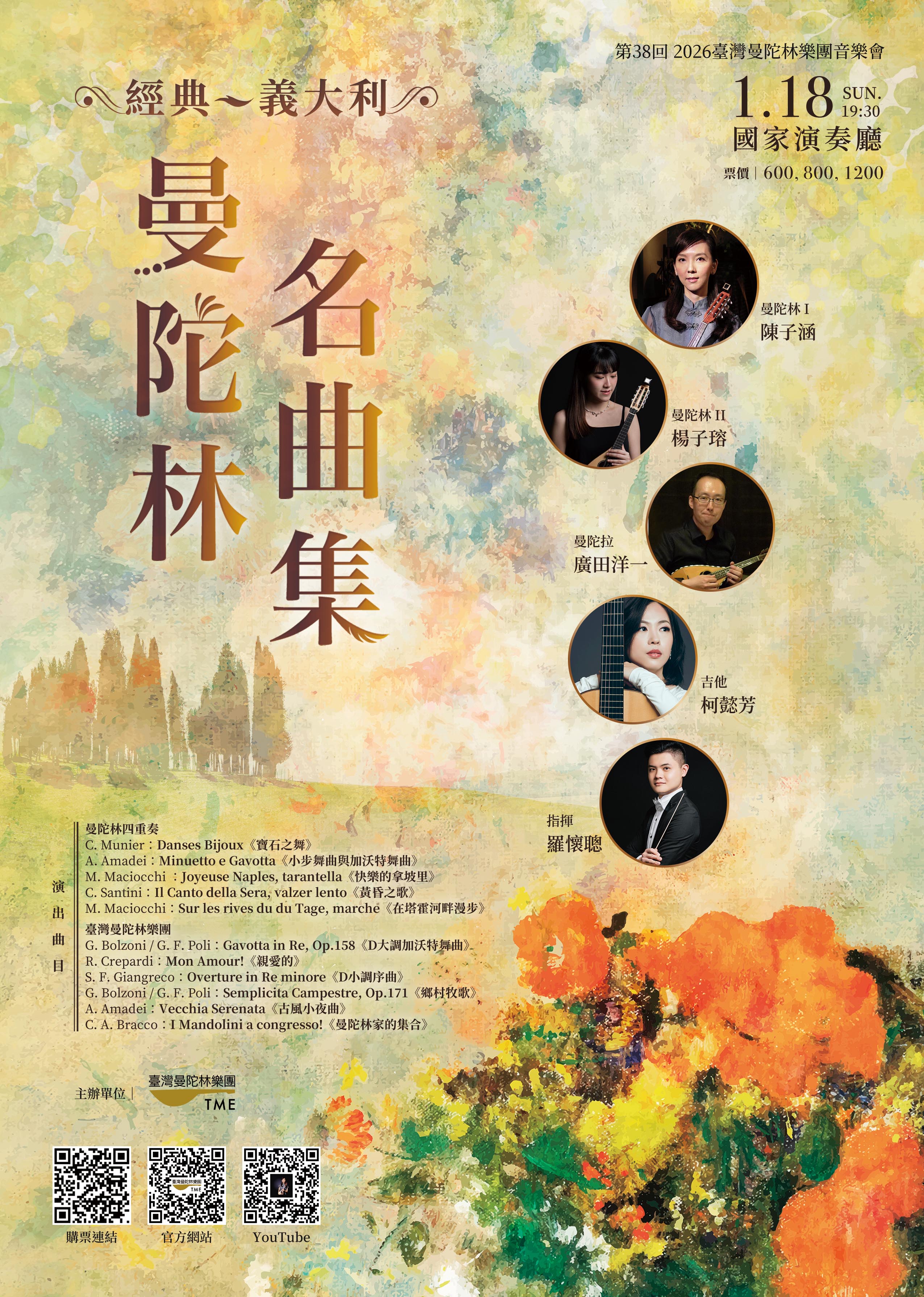 這不僅是一場音樂會,更是一場曼陀林與歷史、傳承與現代的深度對話。邀請您走入國家演奏廳,與我們一同聆聽這些橫跨百年的美麗聲音,讓遺忘的經典重新綻放光芒。